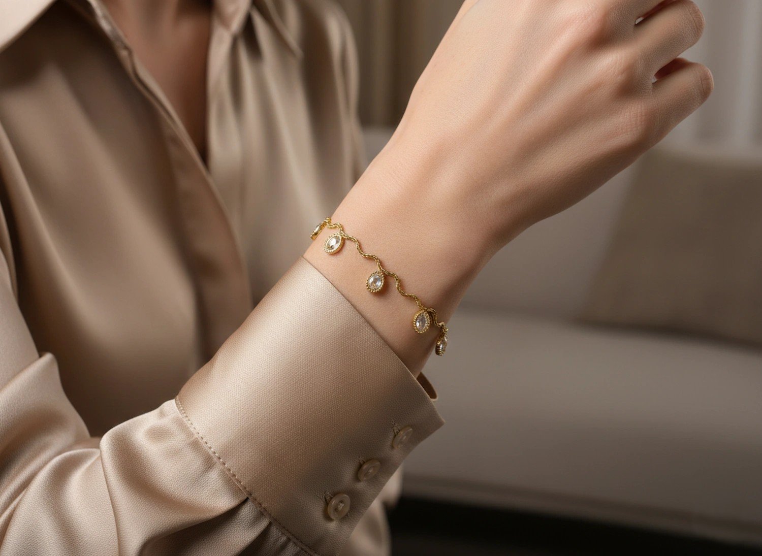 The fluid drop design creates gentle movement and shimmer with every gesture, making it perfect for weddings, festive celebrations, evening parties, or special occasions. Despite its statement appeal, the bracelet remains lightweight and comfortable for extended wear.