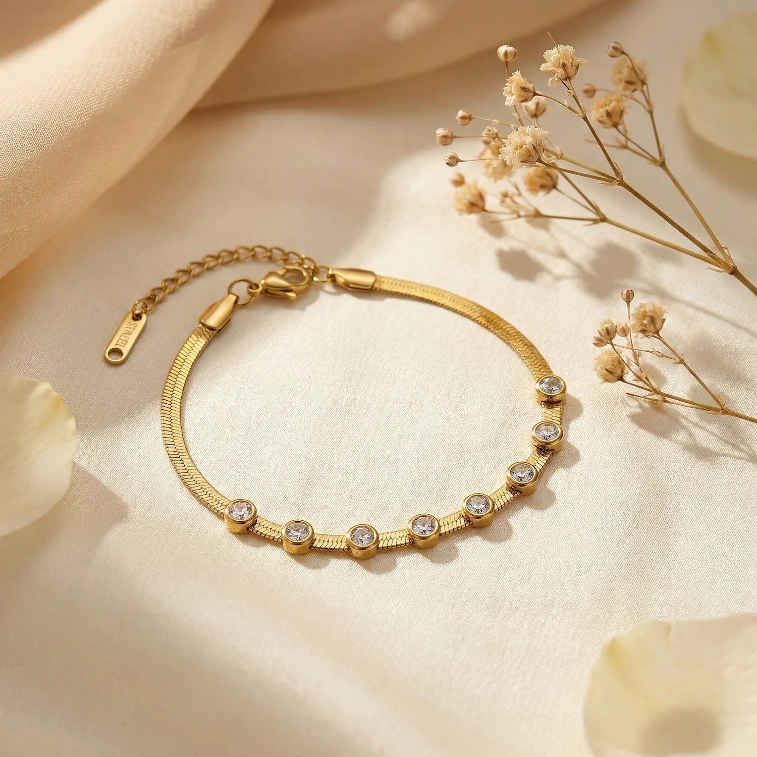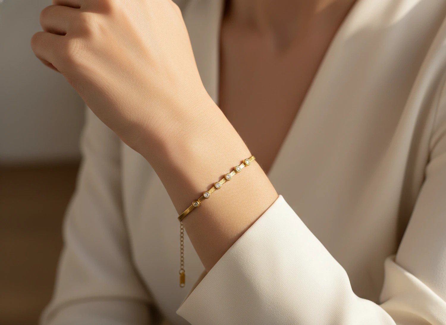 The adjustable extension chain ensures a secure and flexible fit, while the lightweight construction allows for comfortable all-day wear. Whether styled for office elegance, evening events, festive celebrations, or minimal everyday looks, this bracelet enhances your wrist with understated brilliance.