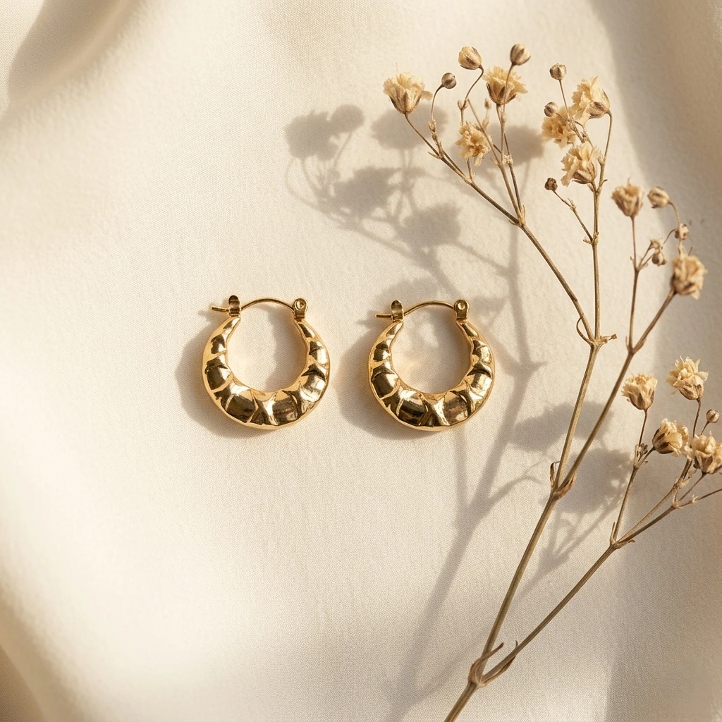Bold, stylish, and effortlessly modern — the Vira Gold Textured Hoops are designed for women who love statement jewellery with a clean and fashionable look.