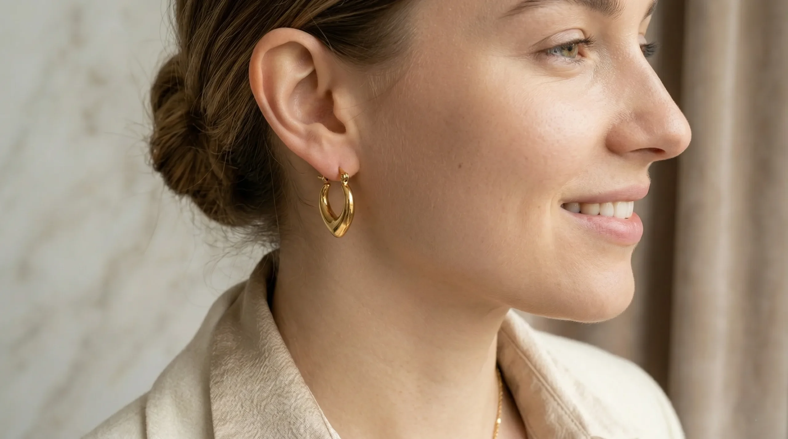 The secure hoop lock closure ensures a comfortable fit, and the lightweight construction makes them perfect for long wear. These earrings are ideal for everyday styling, office wear, casual outfits, and even party looks when paired with layered jewellery.