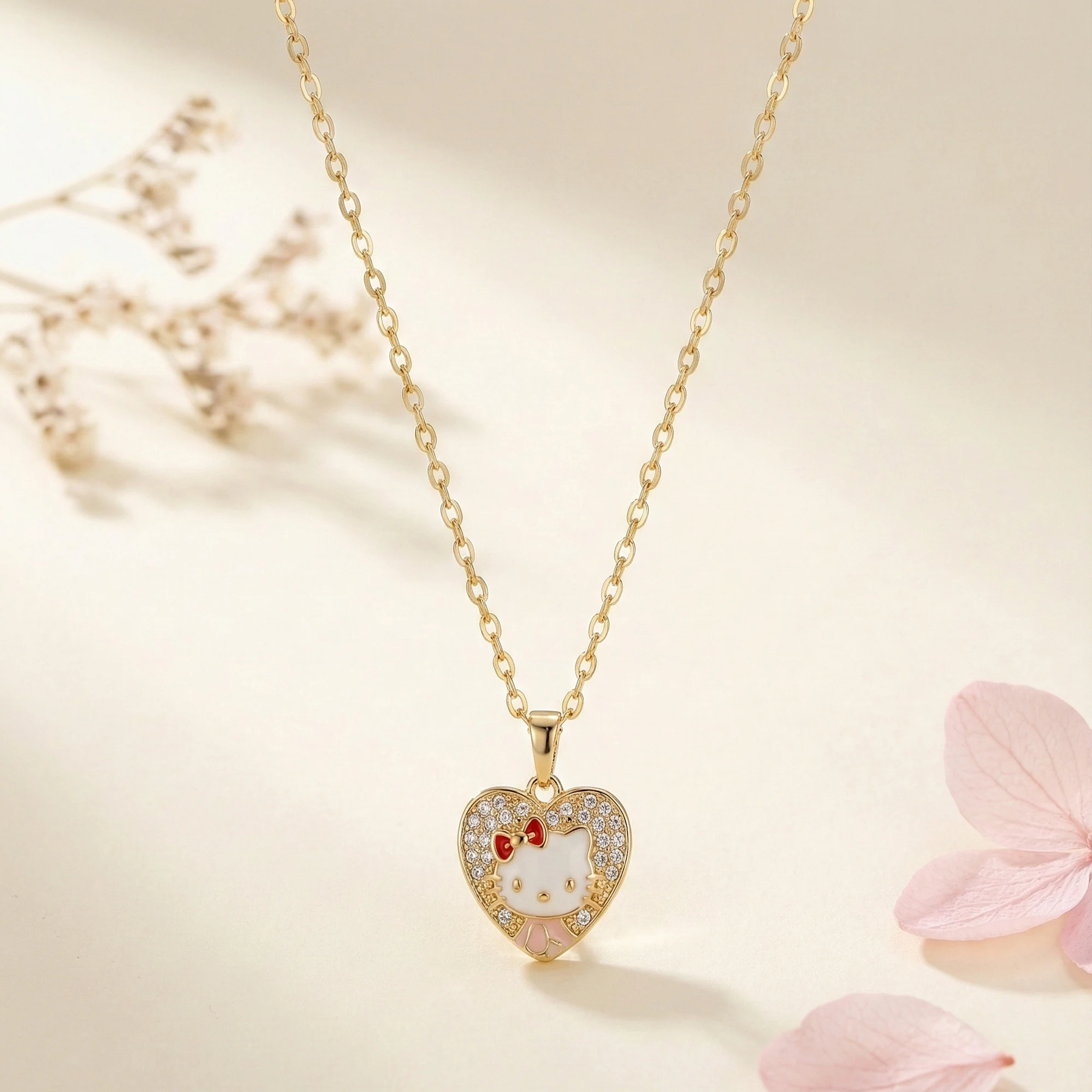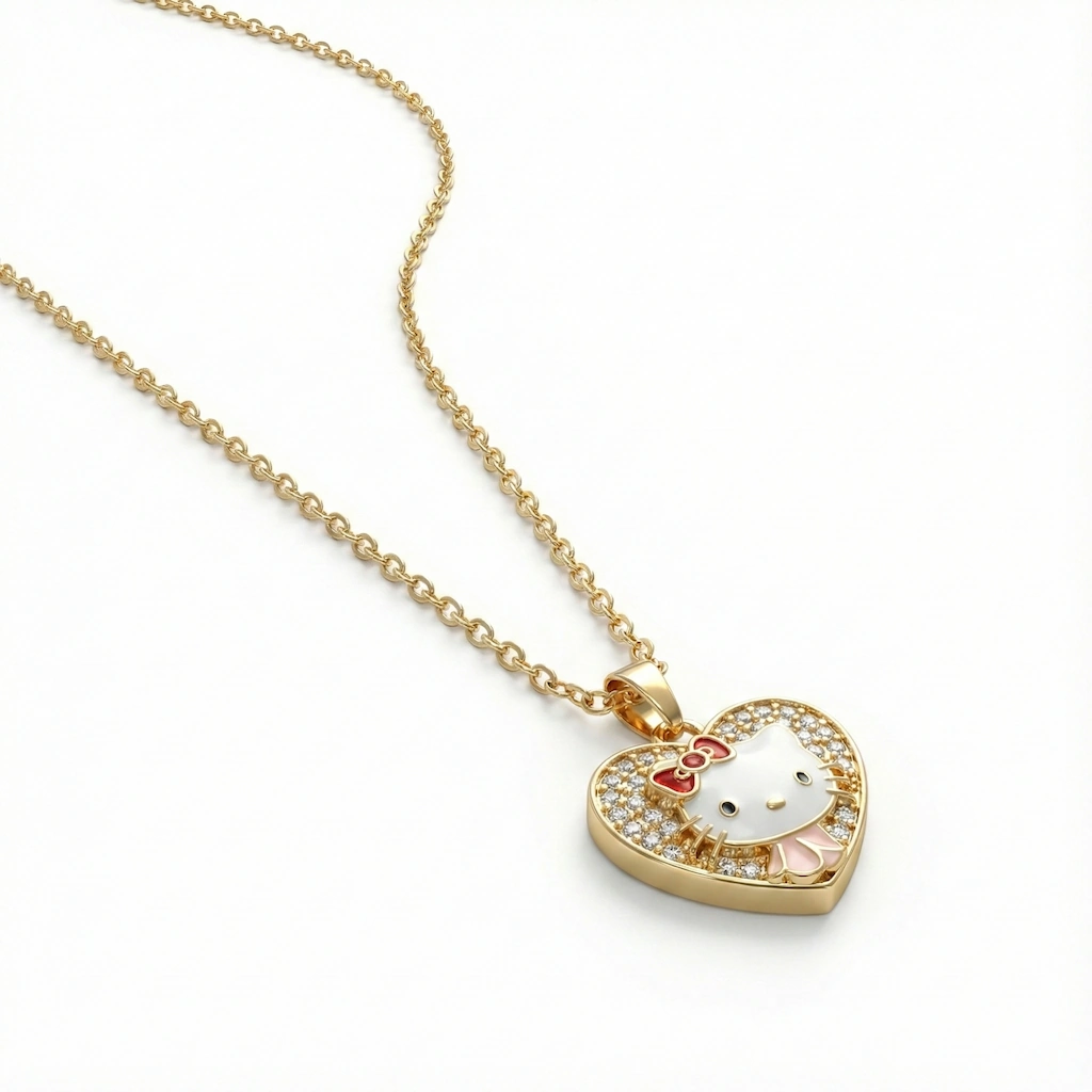 The Sweet Muse Kitty Heart Necklace blends playful personality with refined elegance. Crafted in a heart-shaped silhouette and adorned with delicate crystal detailing, the charming kitty motif adds a soft, whimsical touch while maintaining a polished, premium finish.